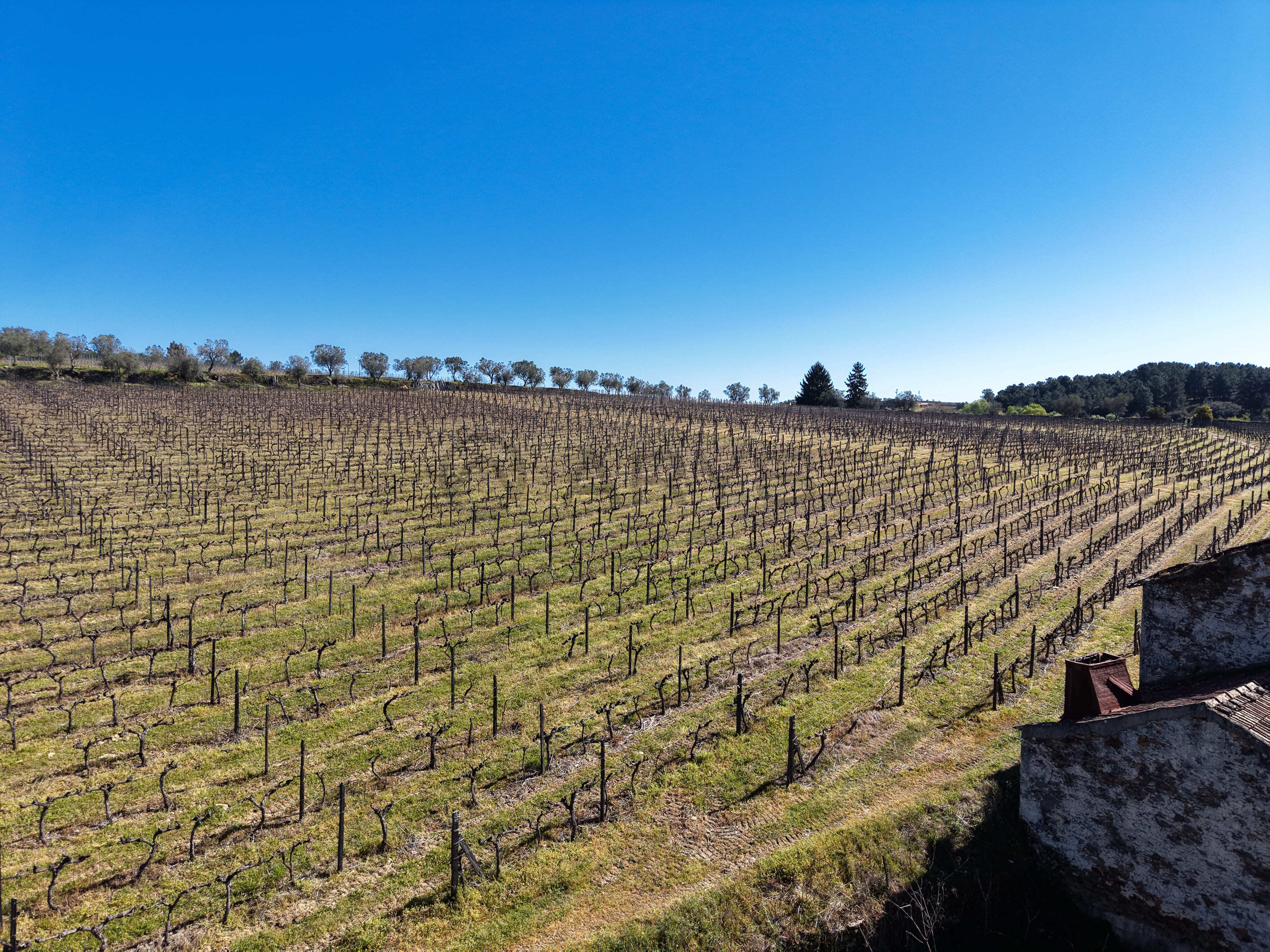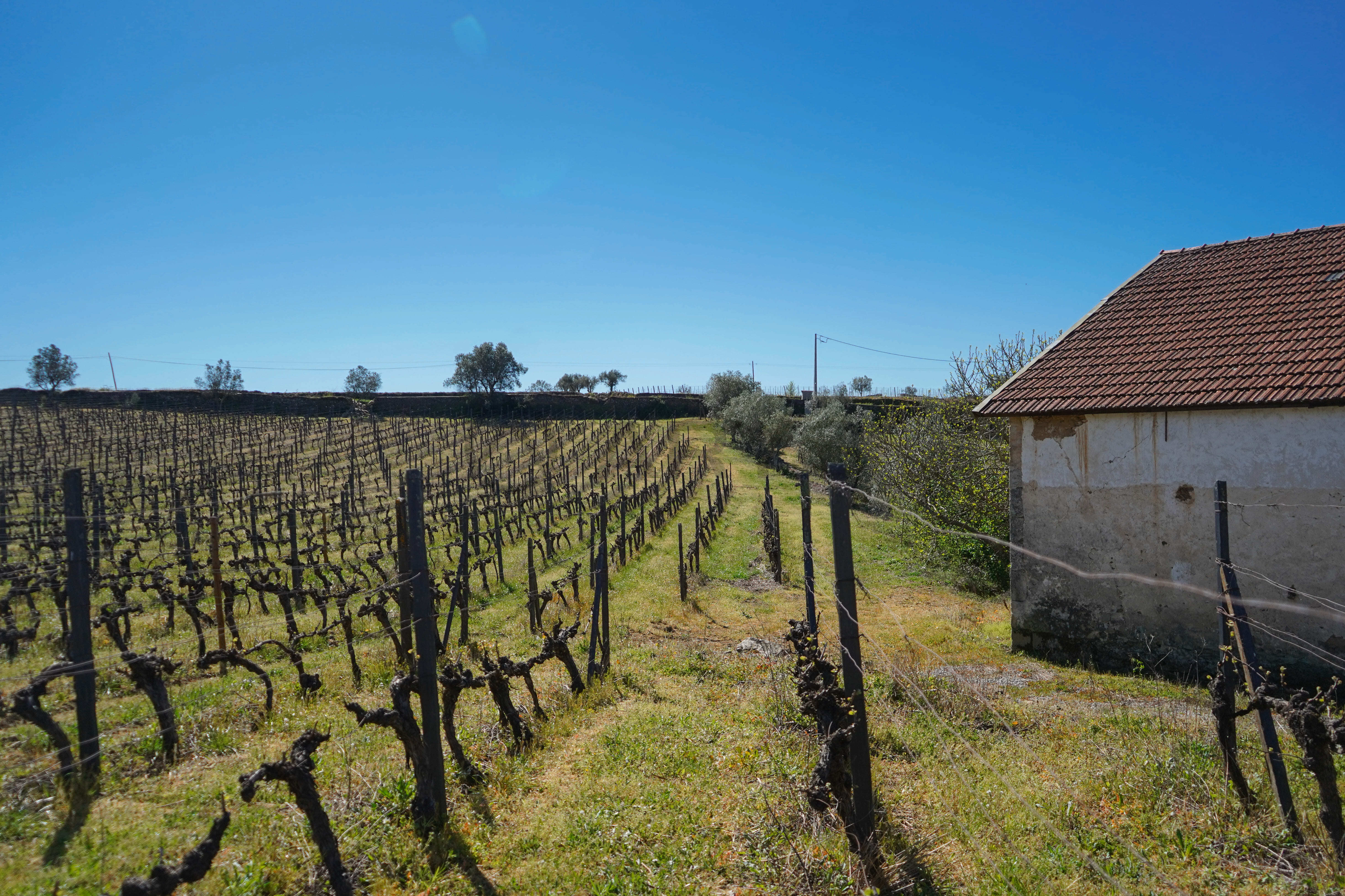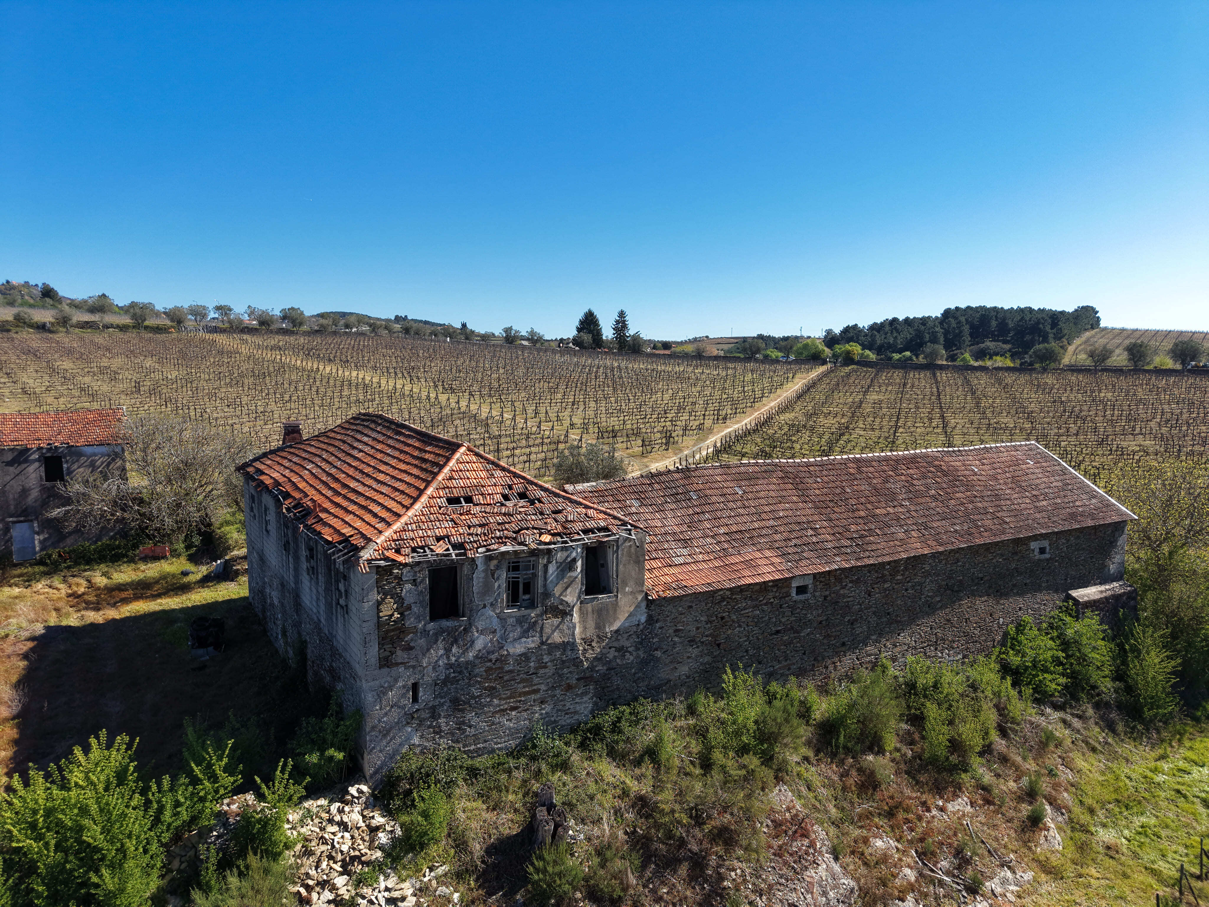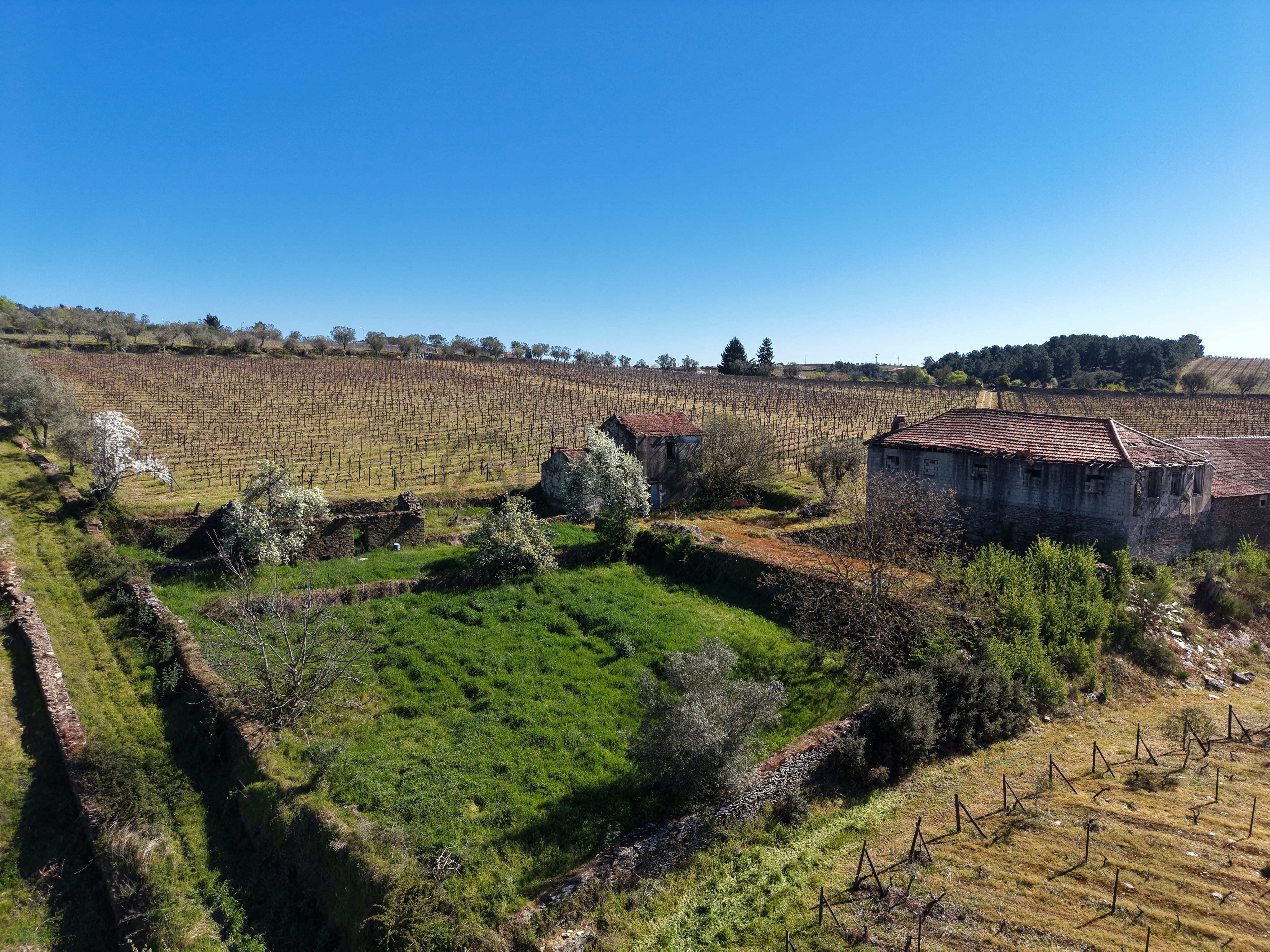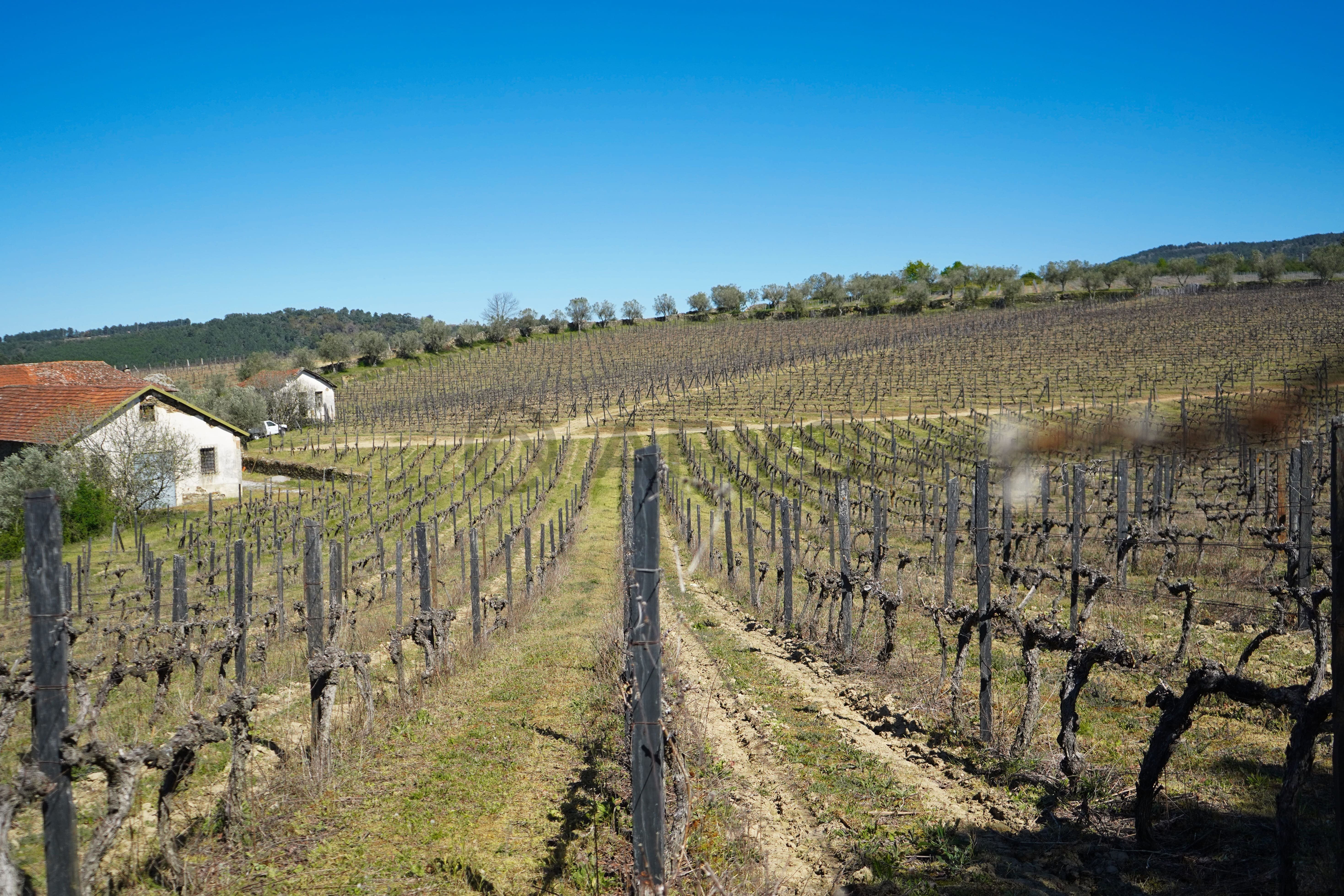 A vinha, em produção, é maioritariamente composta pela casta Moscatel, coexistindo ainda castas brancas e tintas, reforçando a versatilidade e o valor agrícola da propriedade. Conta com poço de grande capacidade alimentado por nascente, abastecimento de água da rede pública e ligação à rede elétrica pública — condições essenciais tanto para uso habitacional como para desenvolvimento de um projeto turístico ou agrícola.
