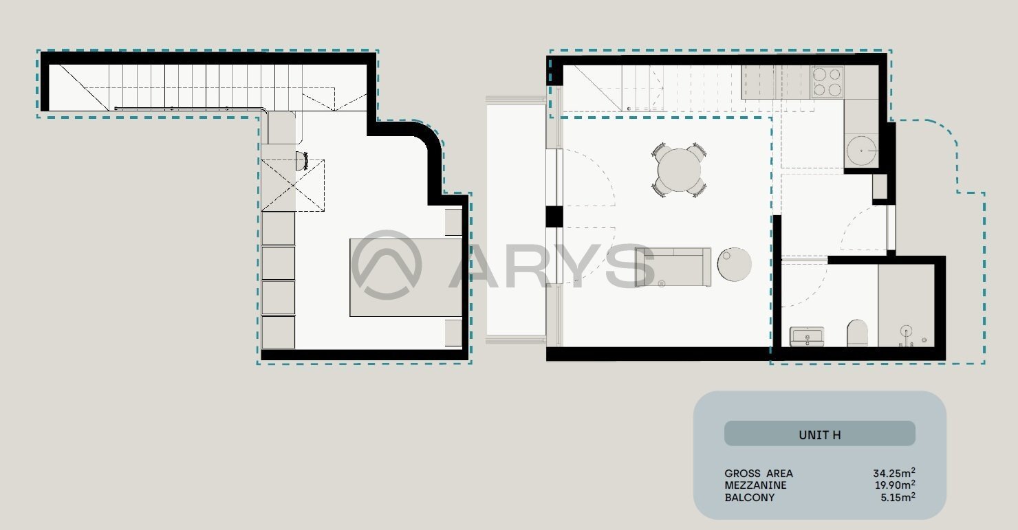 O apartamento dispõe de uma zona social em open space com acesso direto à varanda, proporcionando luminosidade e ligação ao exterior. O mezanino permite criar uma área independente para quarto, escritório ou zona de descanso, conferindo versatilidade e conforto ao espaço.