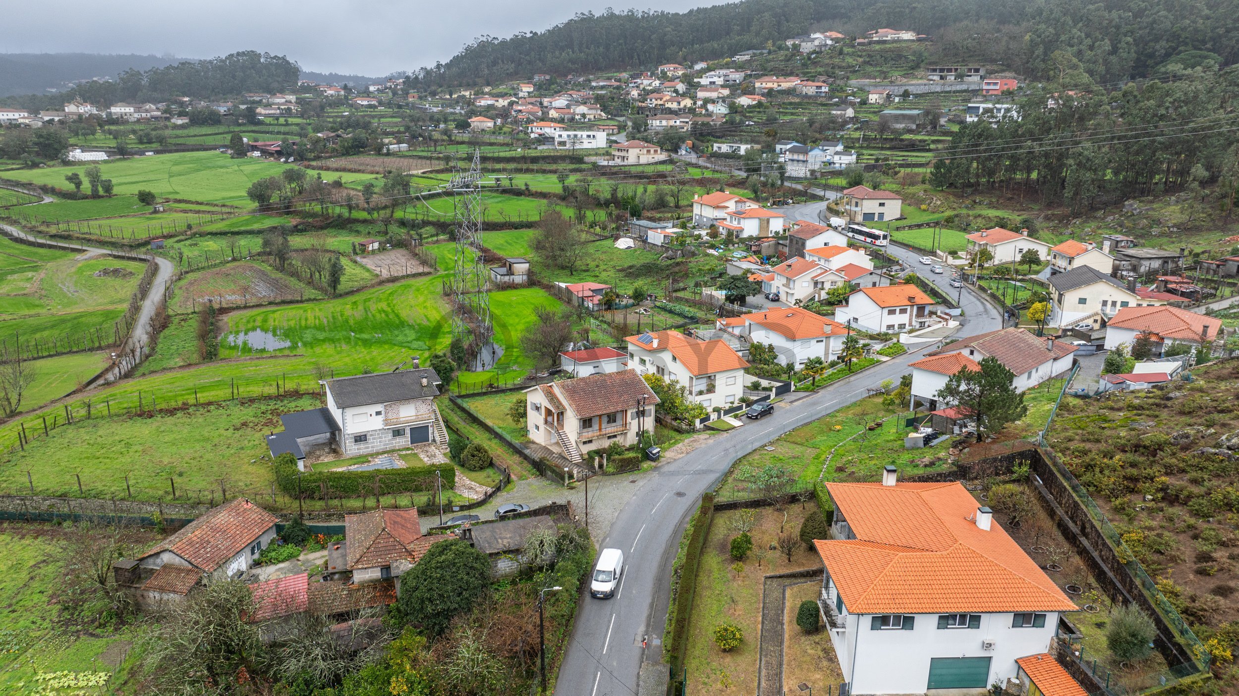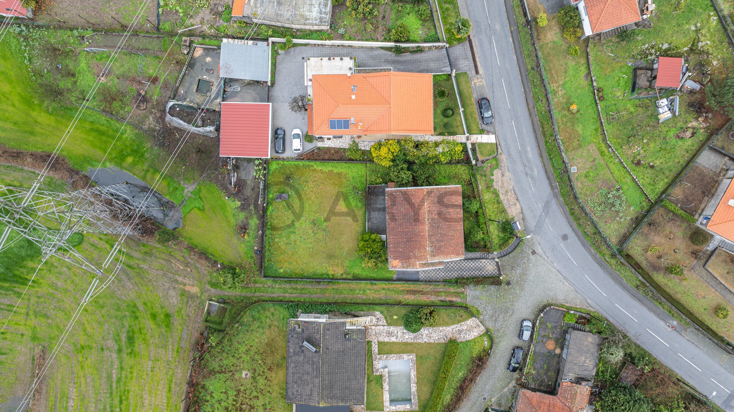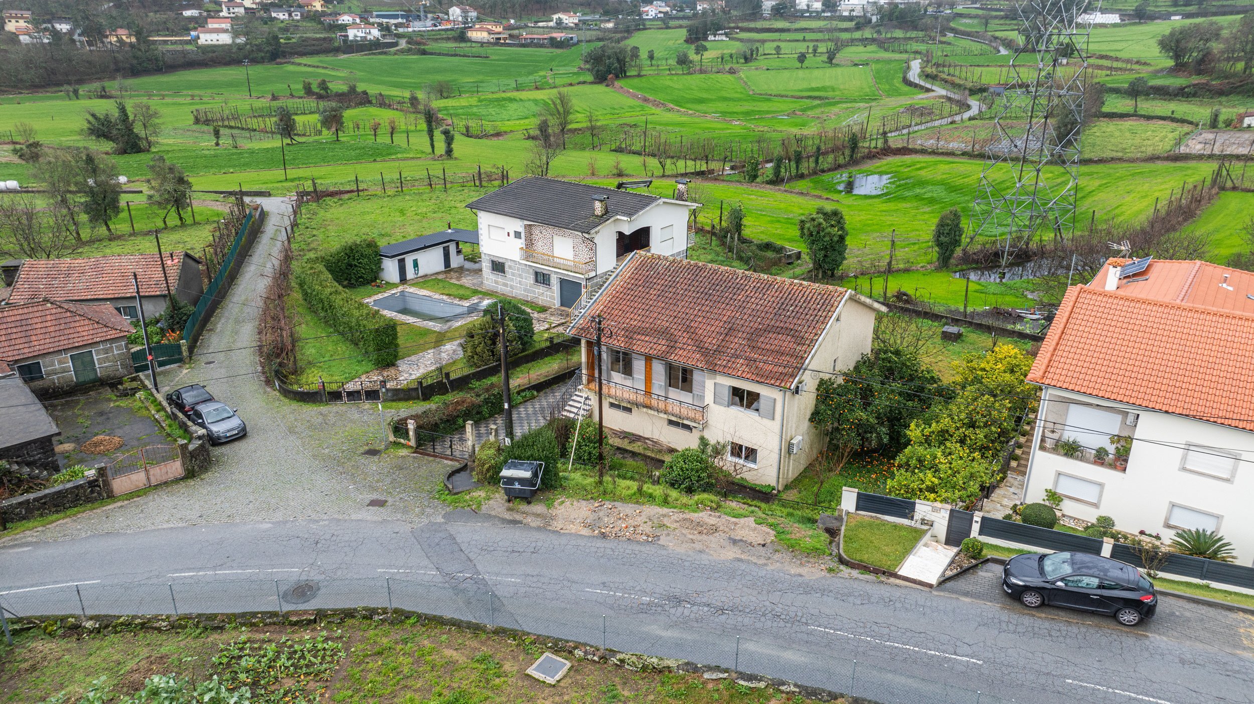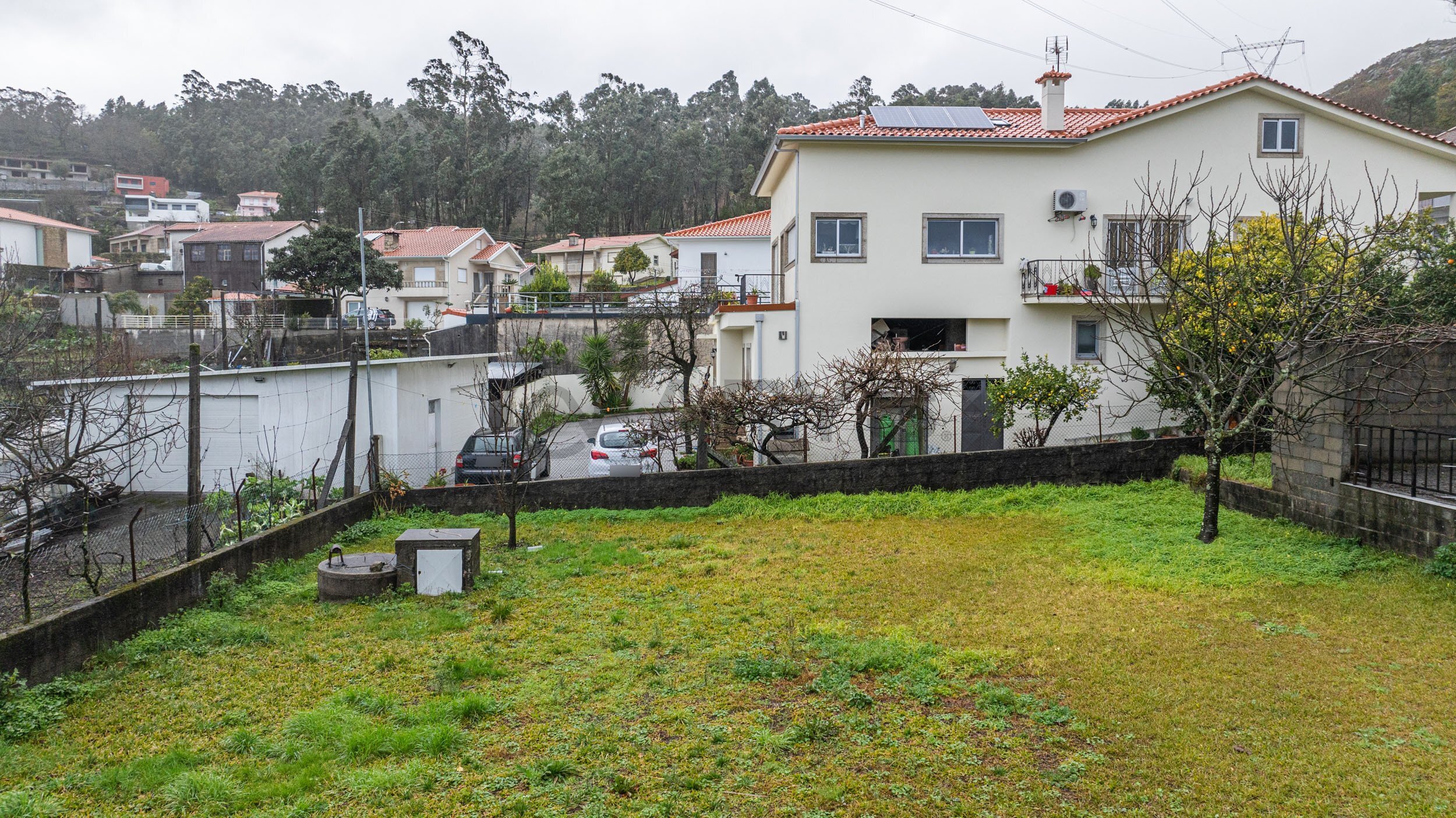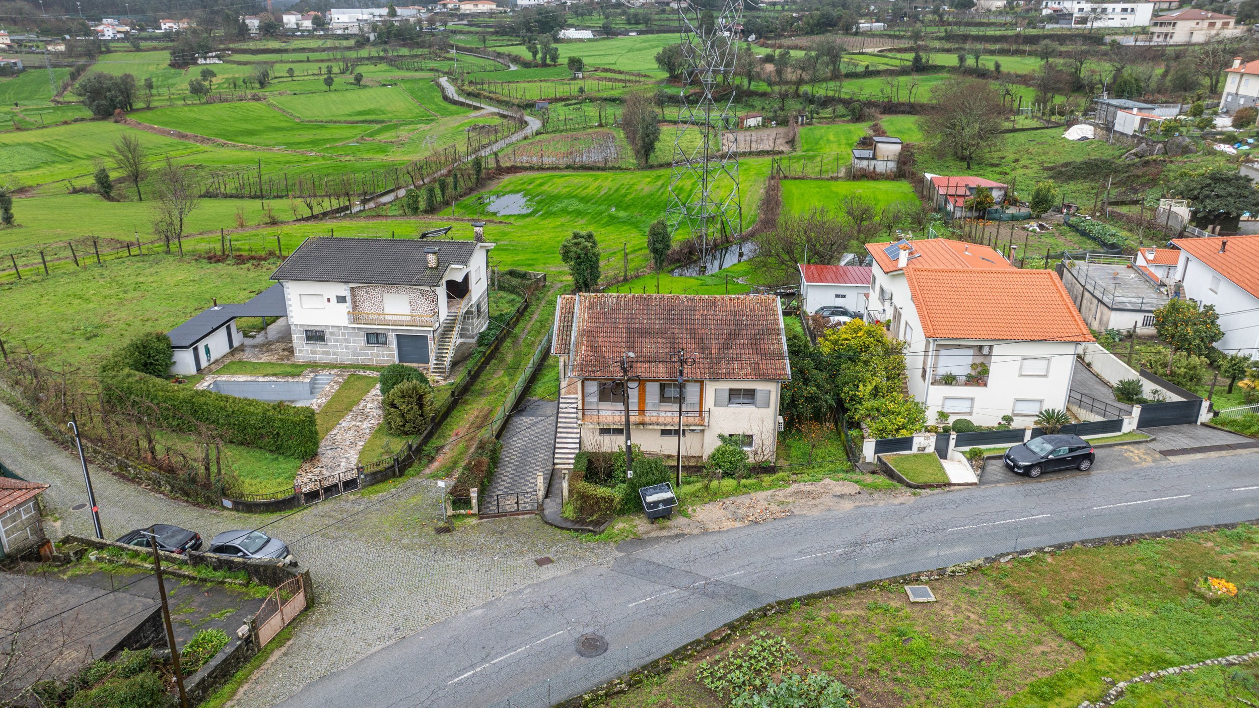 No exterior, o lote oferece espaço e tranquilidade, com garagem para dois carros e uma envolvente calma, ideal para quem valoriza sossego sem abdicar de proximidade à cidade.