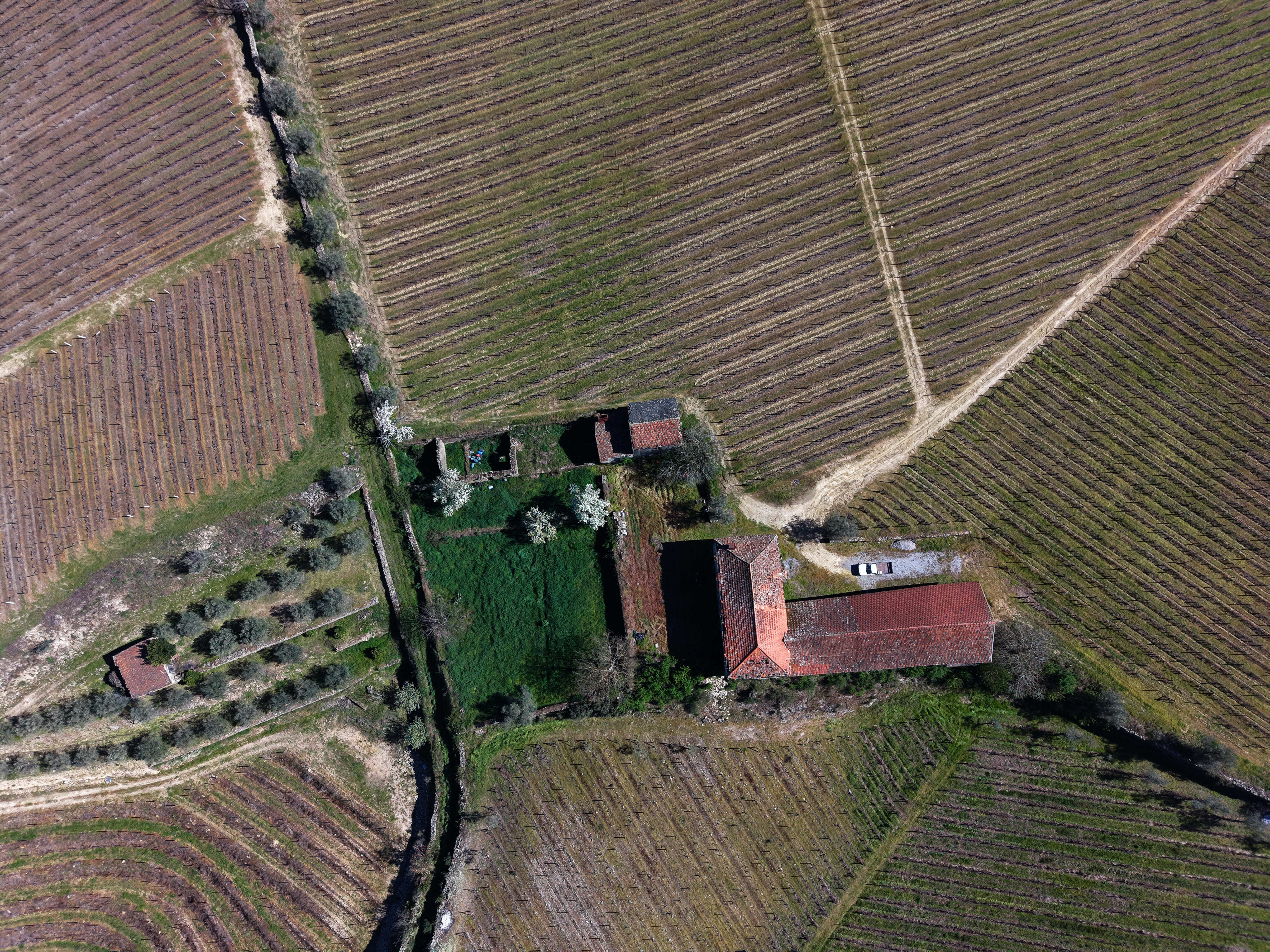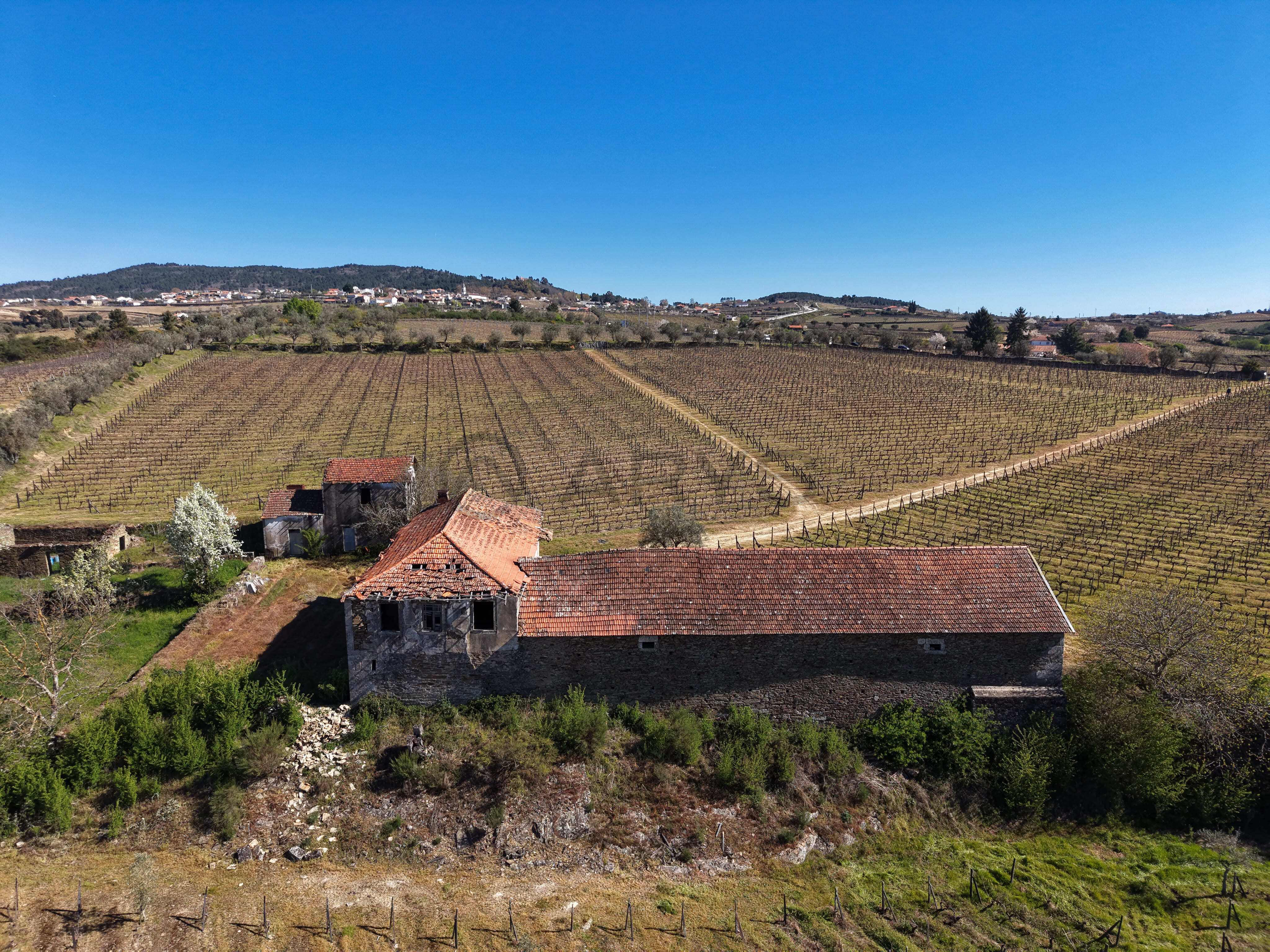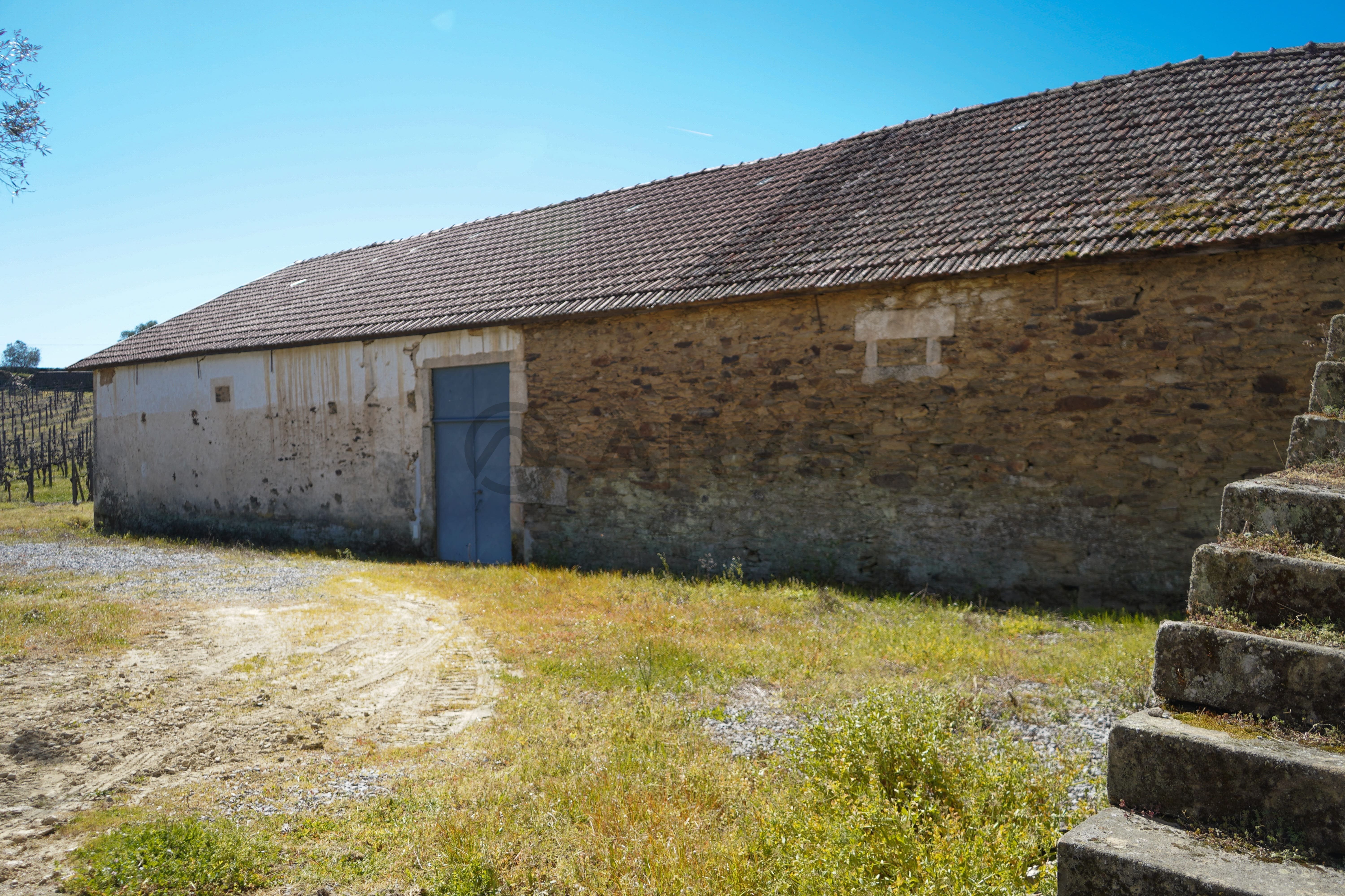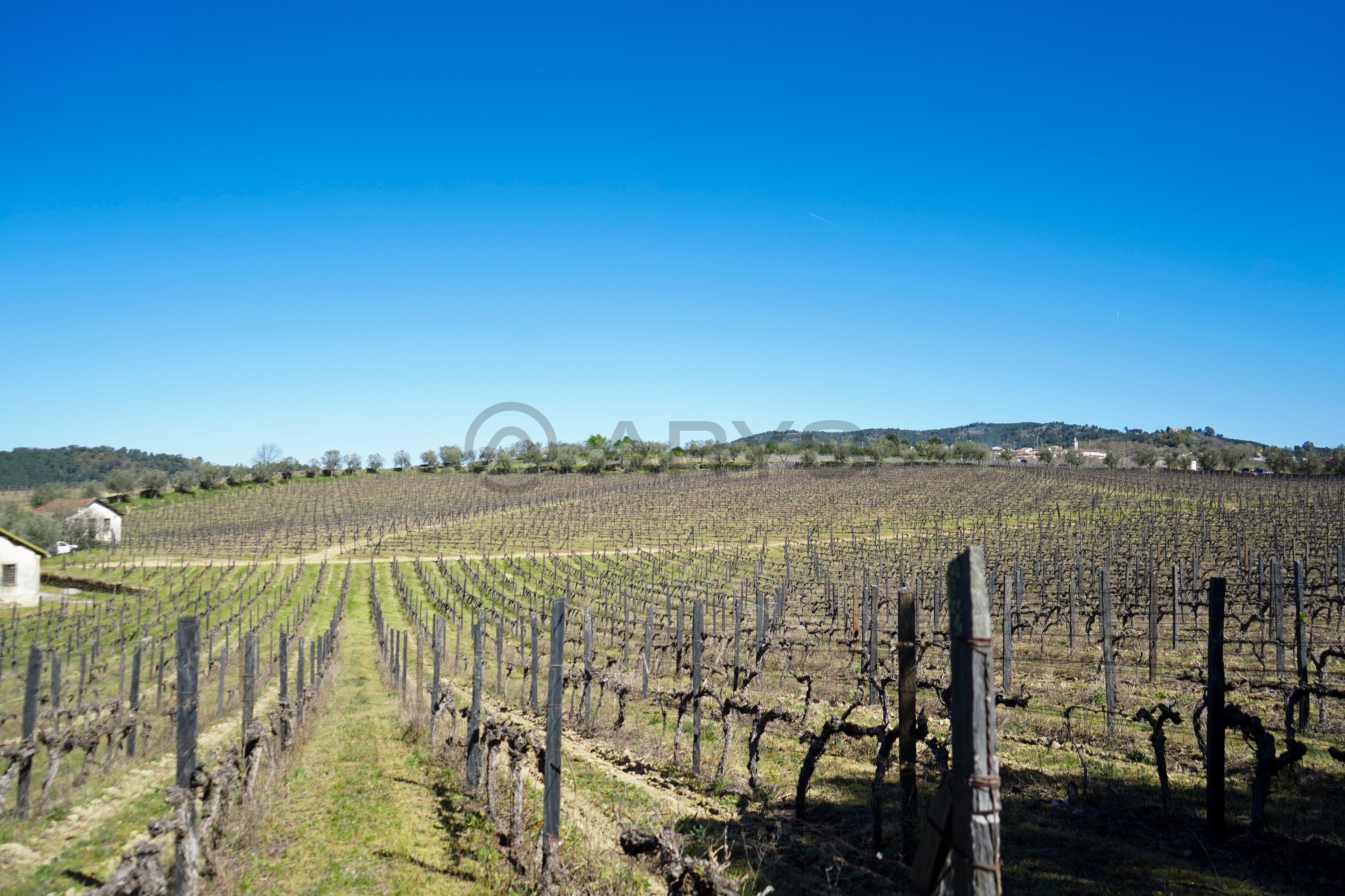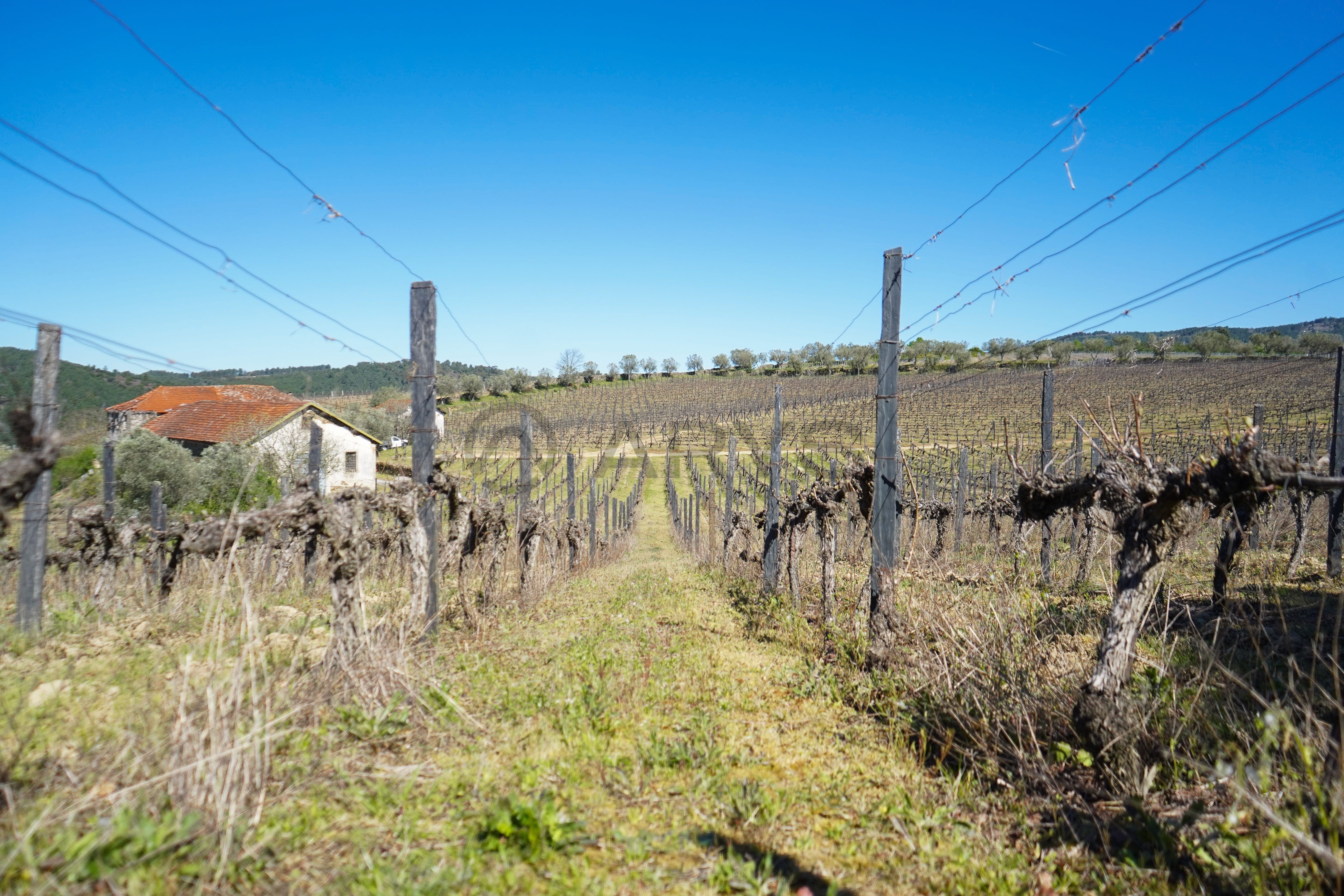 A vinha, em produção, é maioritariamente composta pela casta Moscatel, coexistindo ainda castas brancas e tintas, reforçando a versatilidade e o valor agrícola da propriedade. Conta com poço de grande capacidade alimentado por nascente, abastecimento de água da rede pública e ligação à rede elétrica pública — condições essenciais tanto para uso habitacional como para desenvolvimento de um projeto turístico ou agrícola.